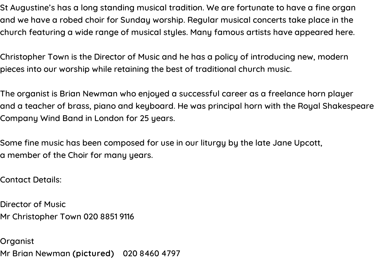 St Augustine’s holds appropriate licences for the use of music in our acts of worship, including those streamed through this website and the social media.
