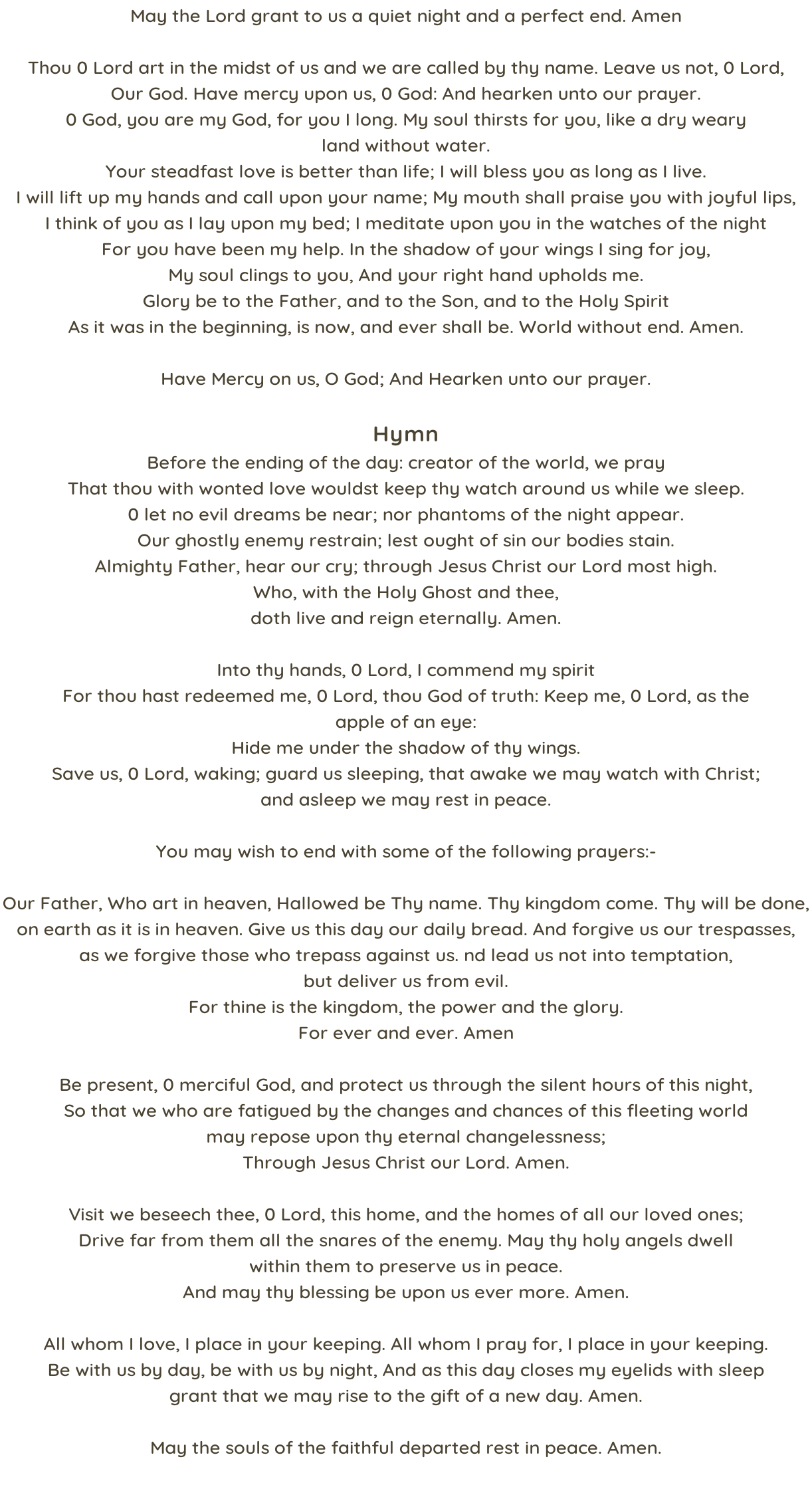 St Augustine’s Church, Grove Park 336 Baring Road, SE12 0DU The Office of Compline (Night Prayer) Click here to return to Our Thoughts and Prayers